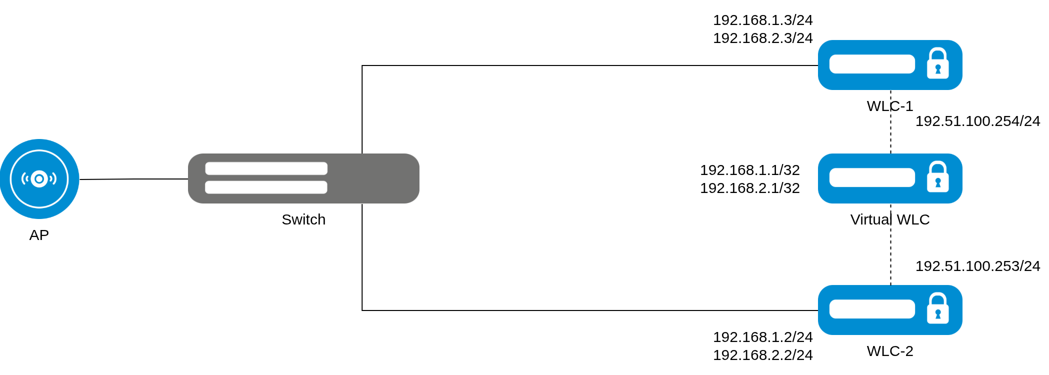 wlc-1(config-bridge)# ip address 198.51.100.254/24 unit 1 wlc-1(config-bridge)# ip address 198.51.100.253/24 unit 2 |