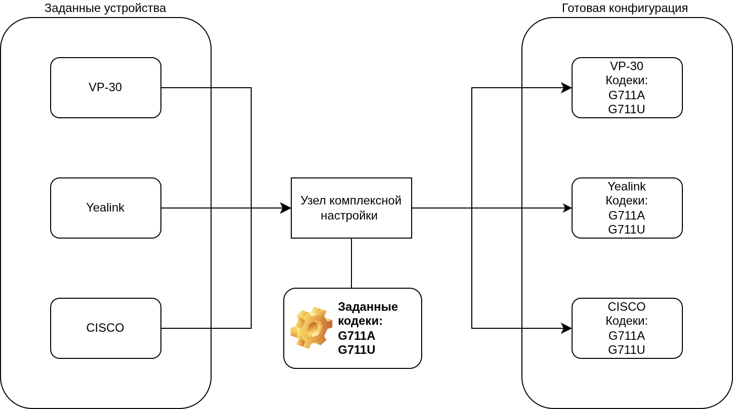 Комплексная настройка кодеков осуществляется в графе конфигурации через «Узел комплексной настройки», в которой имеются все доступные кодеки. При назначении кодеков настройка сама определяет модель и вендор устройства и делает настройку выбранных кодеков по шаблону для выбранного устройства, тем самым одна настройка выбранных кодеков задается на несколько разных устройств.