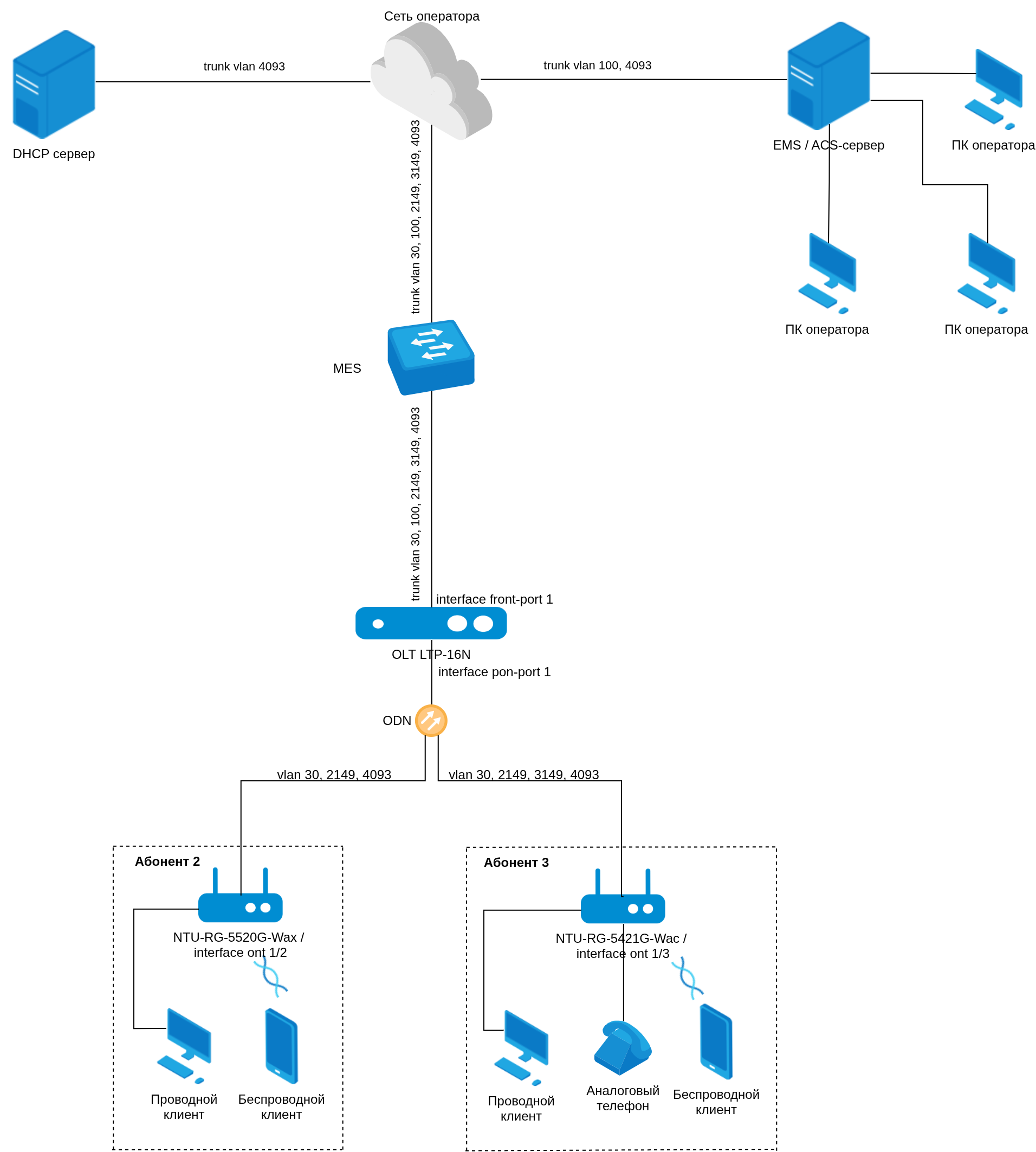 В общем виде схема включения ACS-сервера в сеть выглядит следующим образом. В качестве примера для взаимодействия ONT и ACS сервера рассмотрена настройка VLAN 4093.