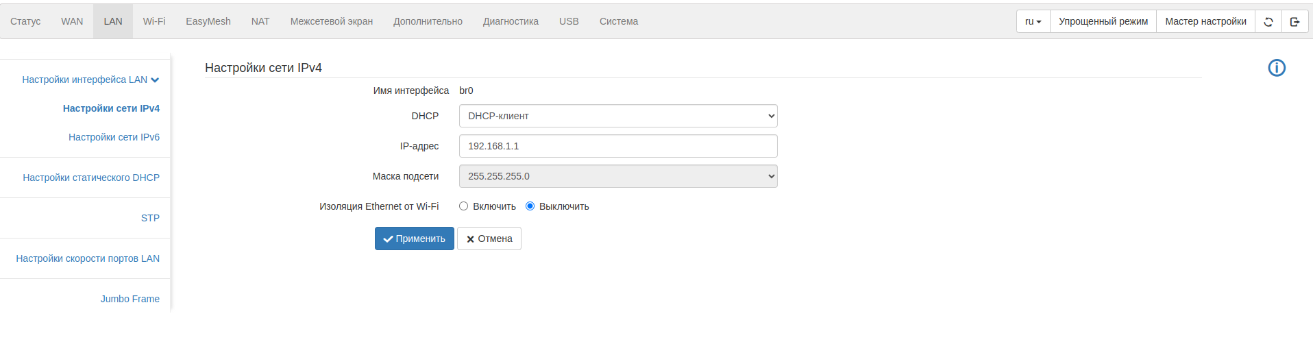 Шаг 2. Устанавливаем настройки сети в режим "DHCP-клиент"